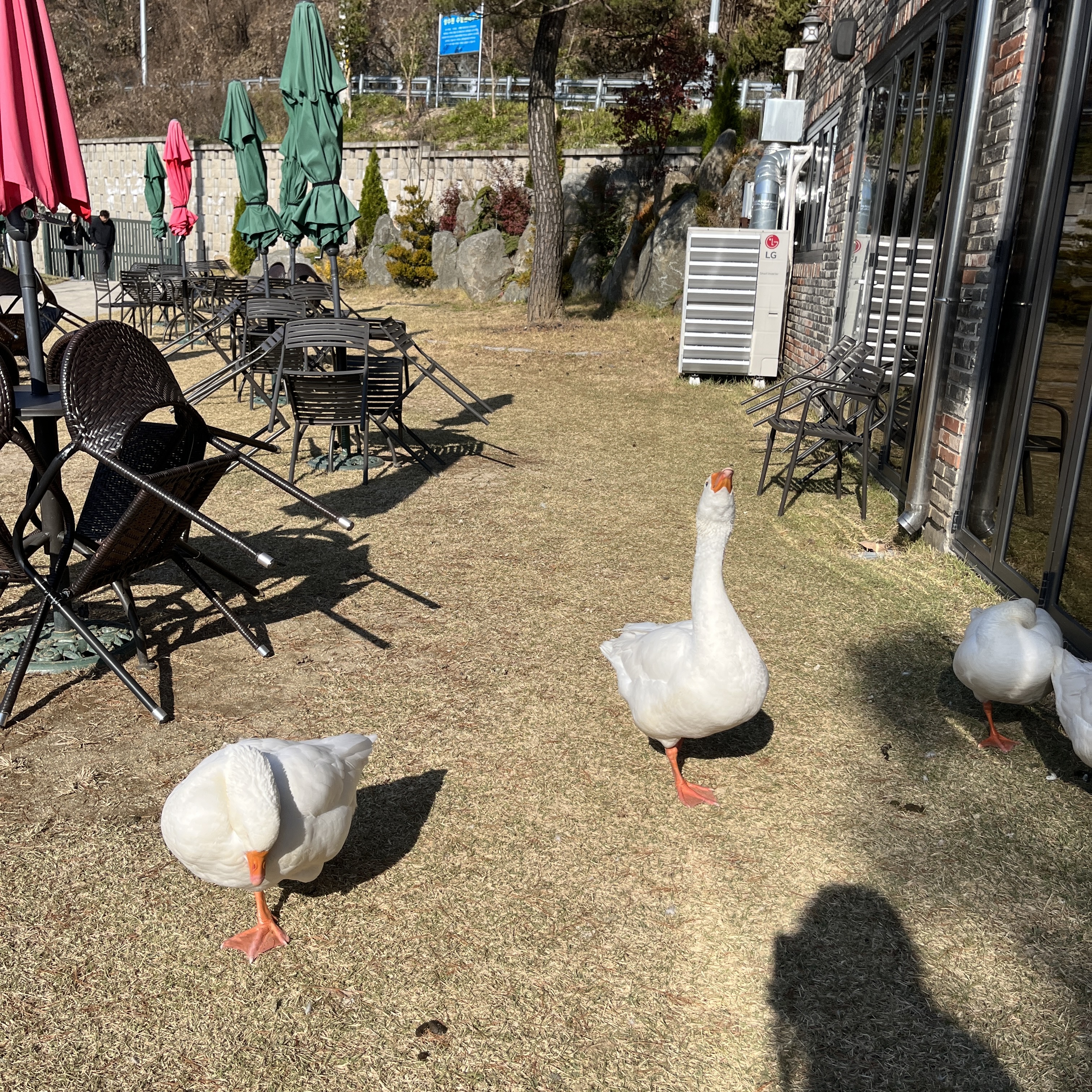 거위들에게 꼬리를 치는데 너무 귀여웠어요..