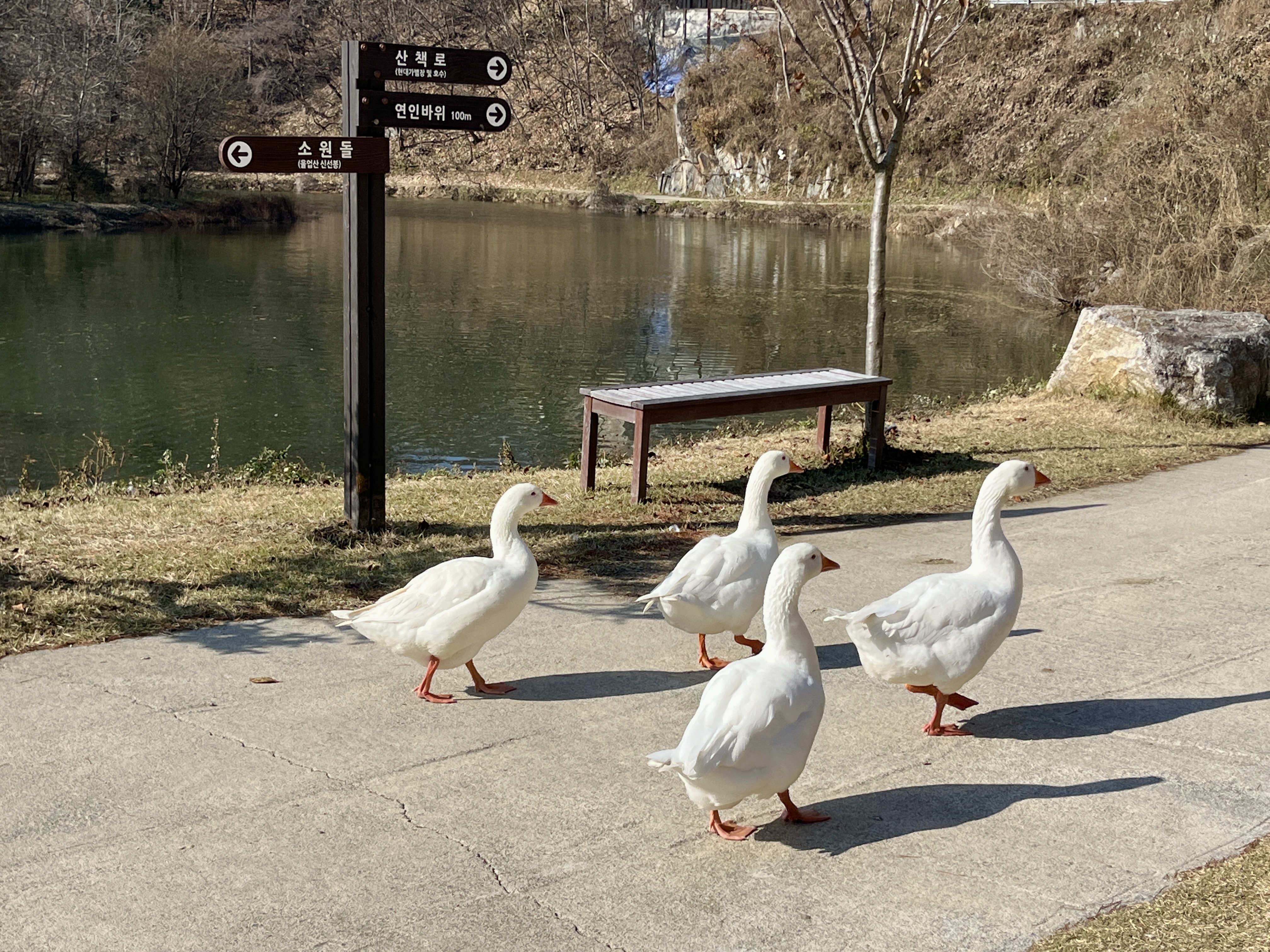 한참을 거위들에 쫒기며 신나게 뛰어다녔답니다.