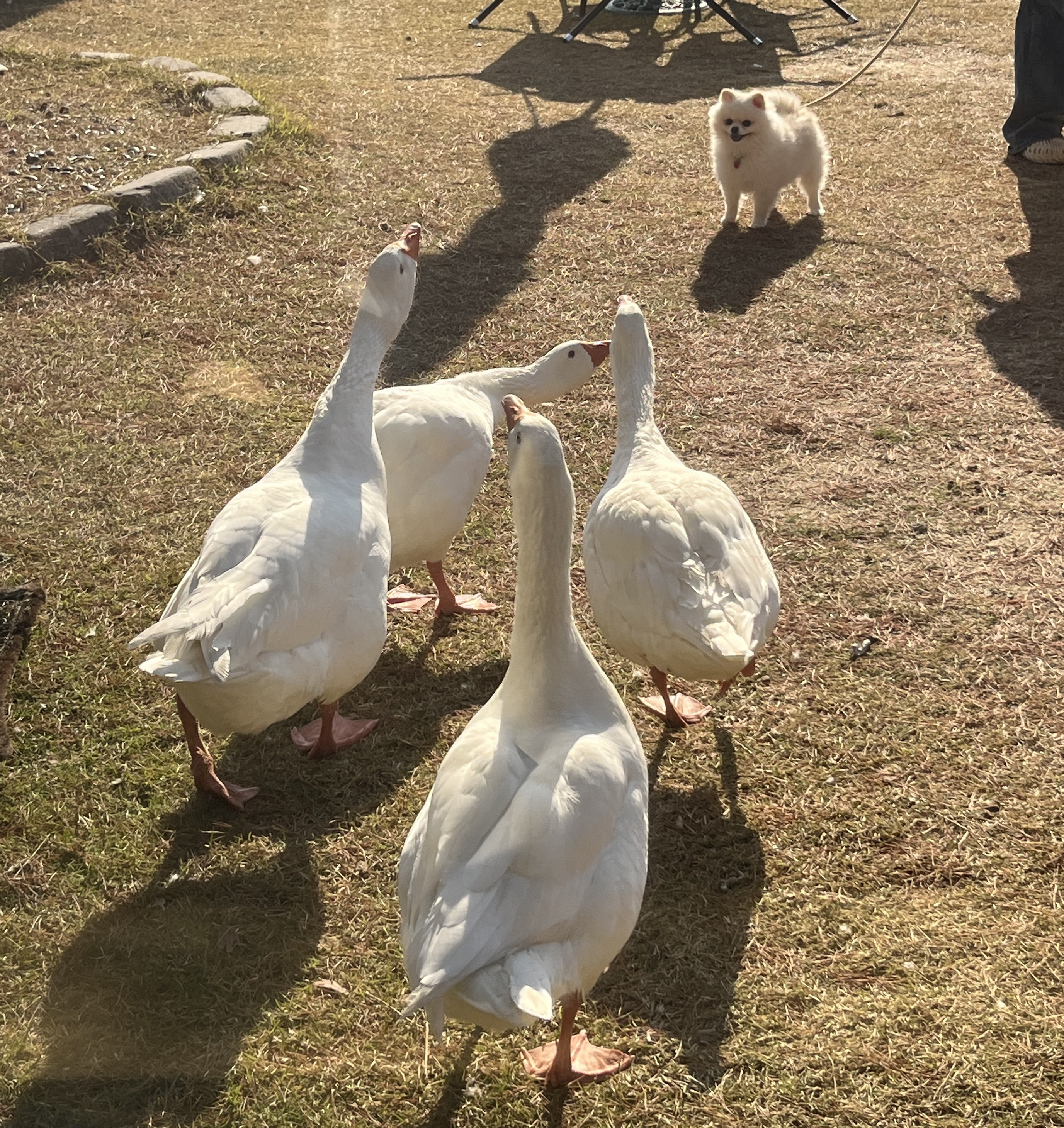 거위들에게 꼬리를 치는데 너무 귀여웠어요..