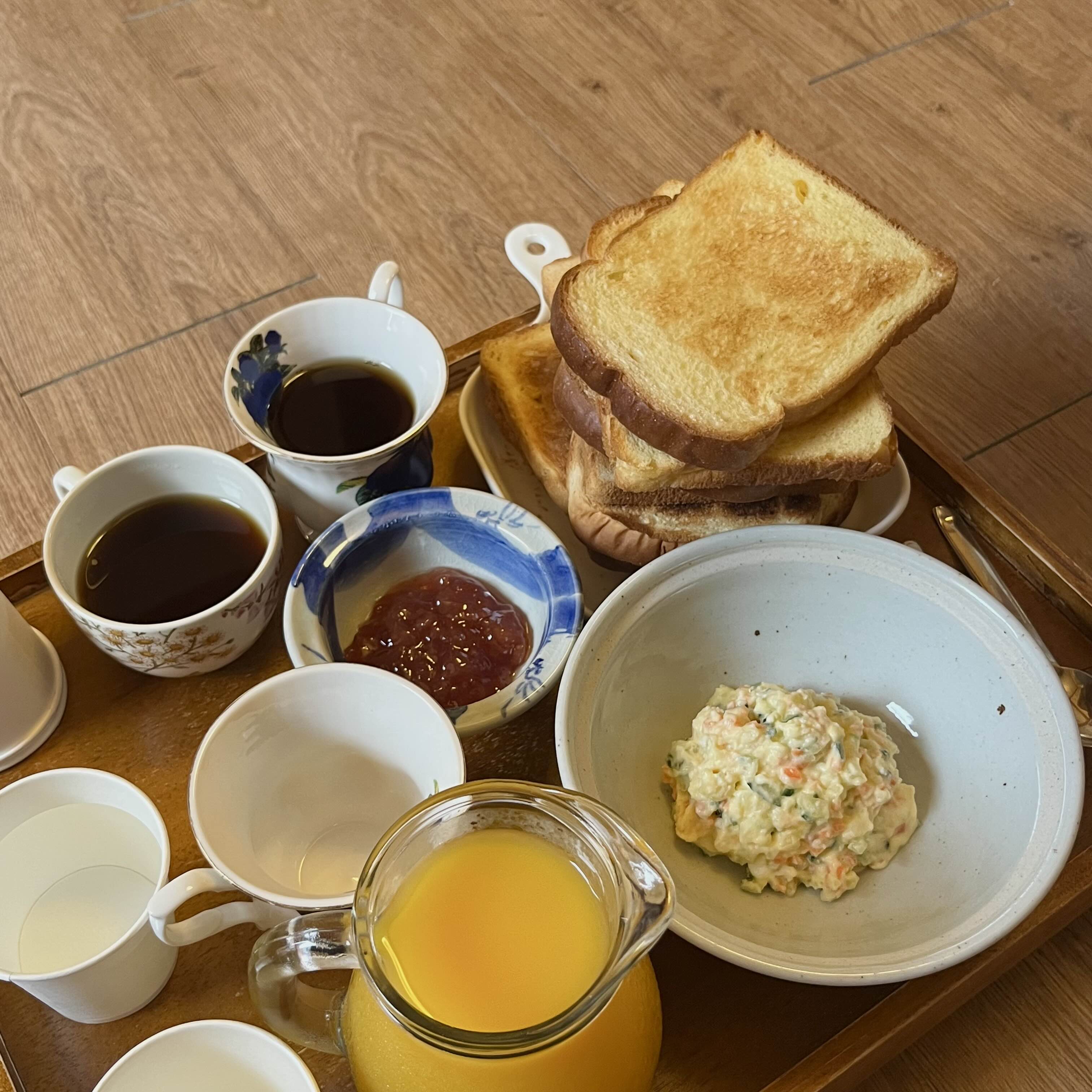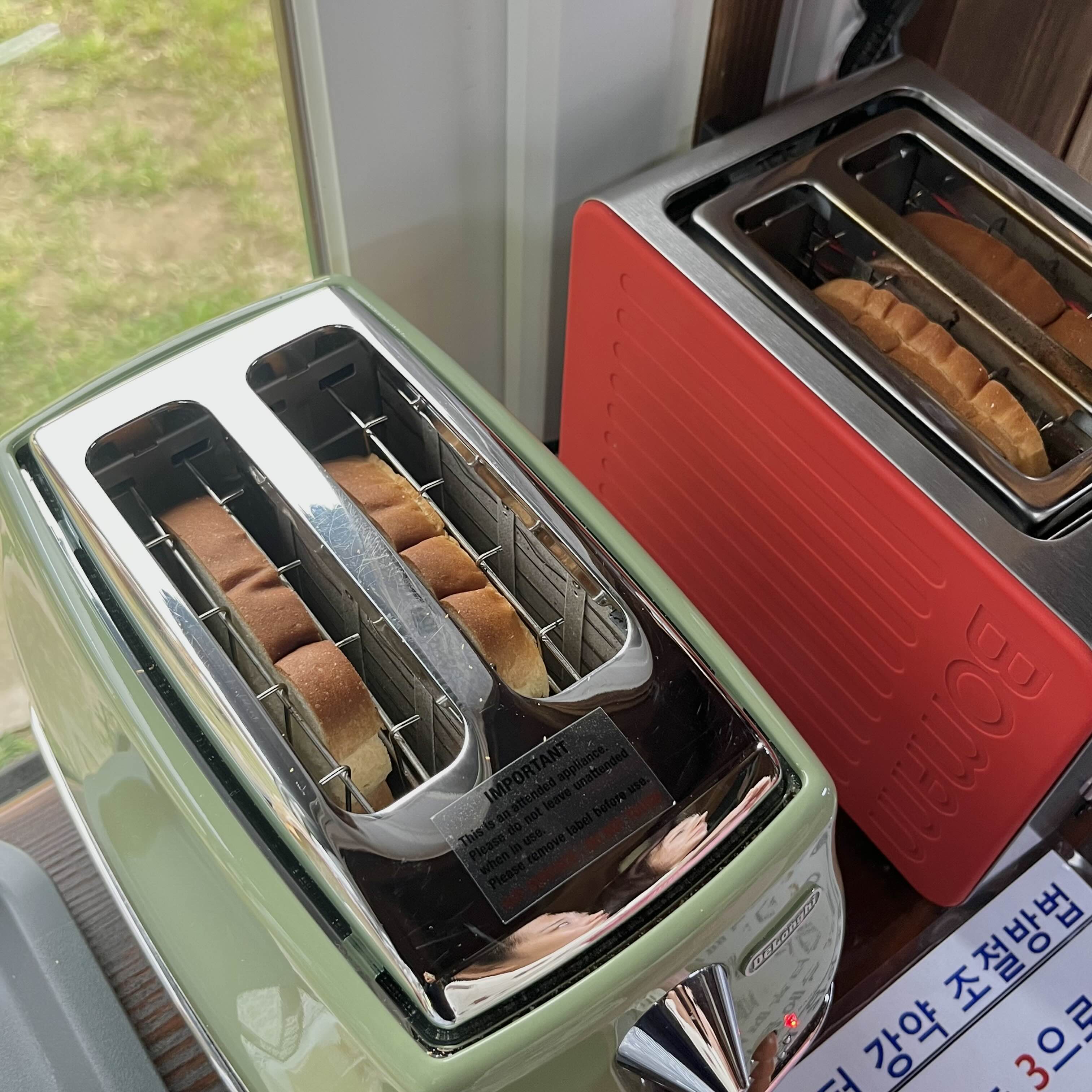 그럼 각자 식기를 챙겨 토스트와 커피를 챙기면 됩니다.