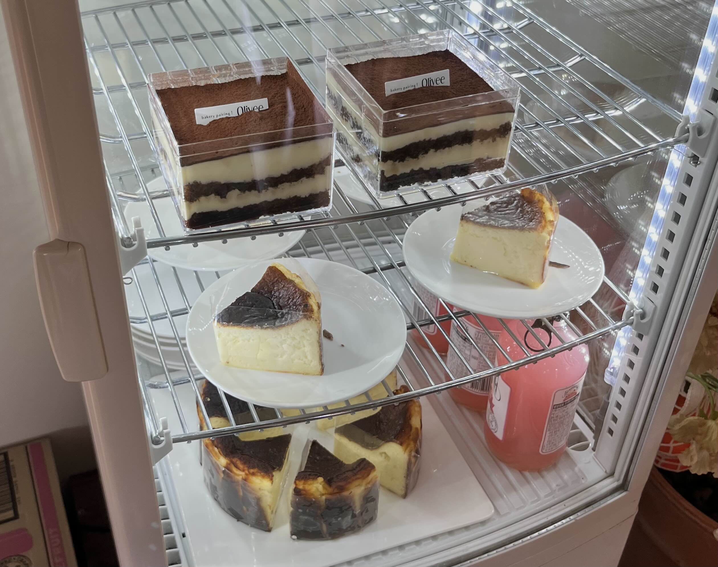 벽 한켠에 있는 미니 냉장고 에는 케이크들도 있습니다.