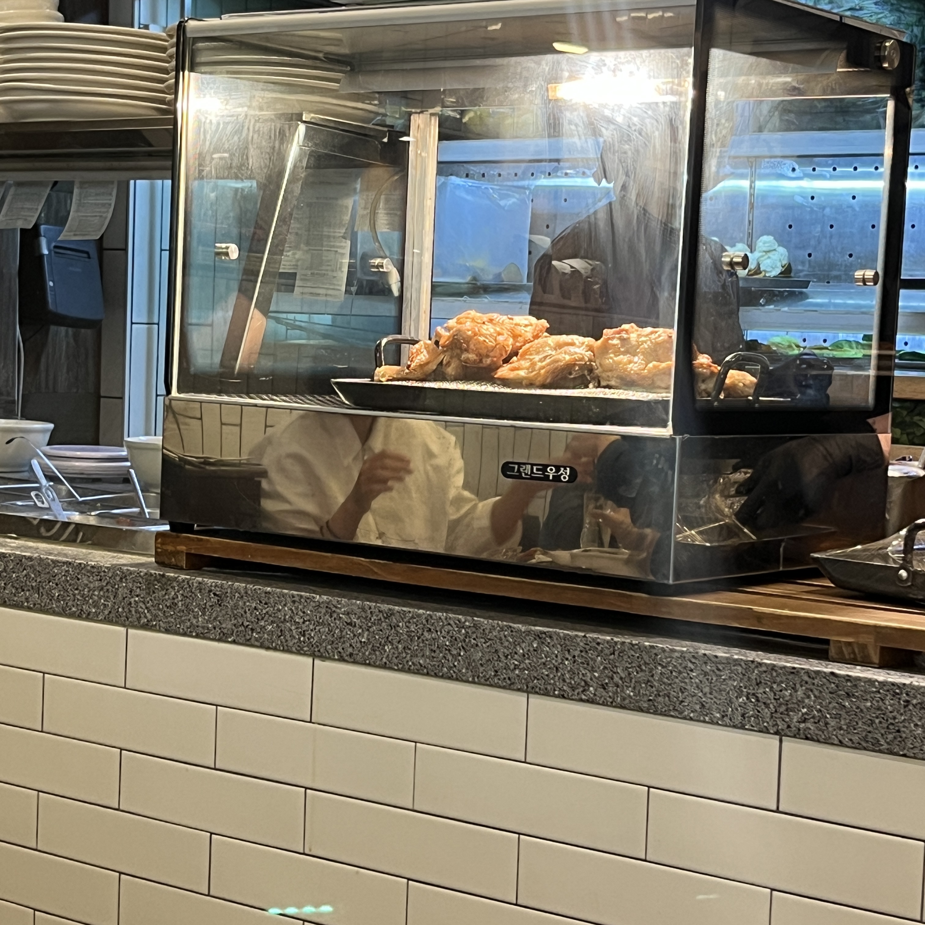 크림 소스로 범벅된 치킨은 정말 사랑입니다.양이 많지만 어느순간 다 먹어치운