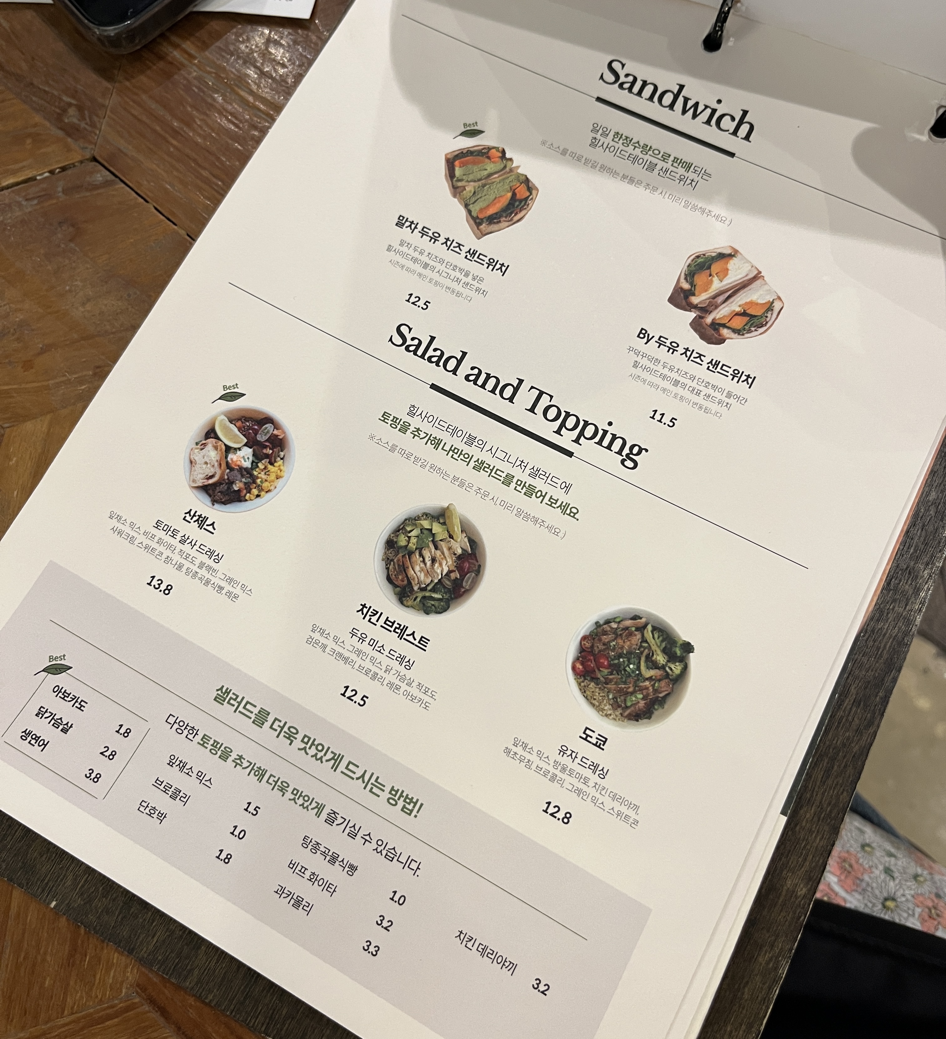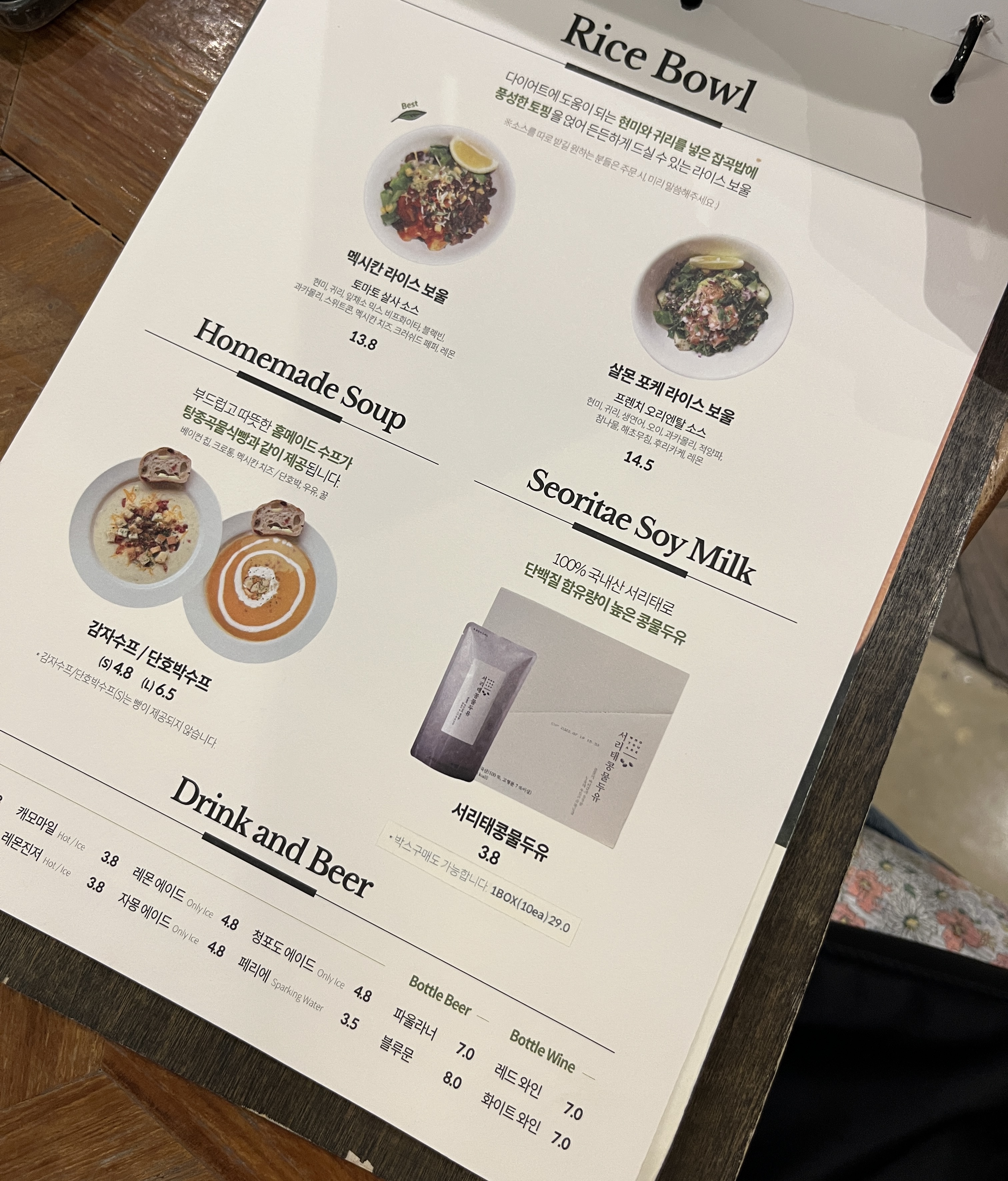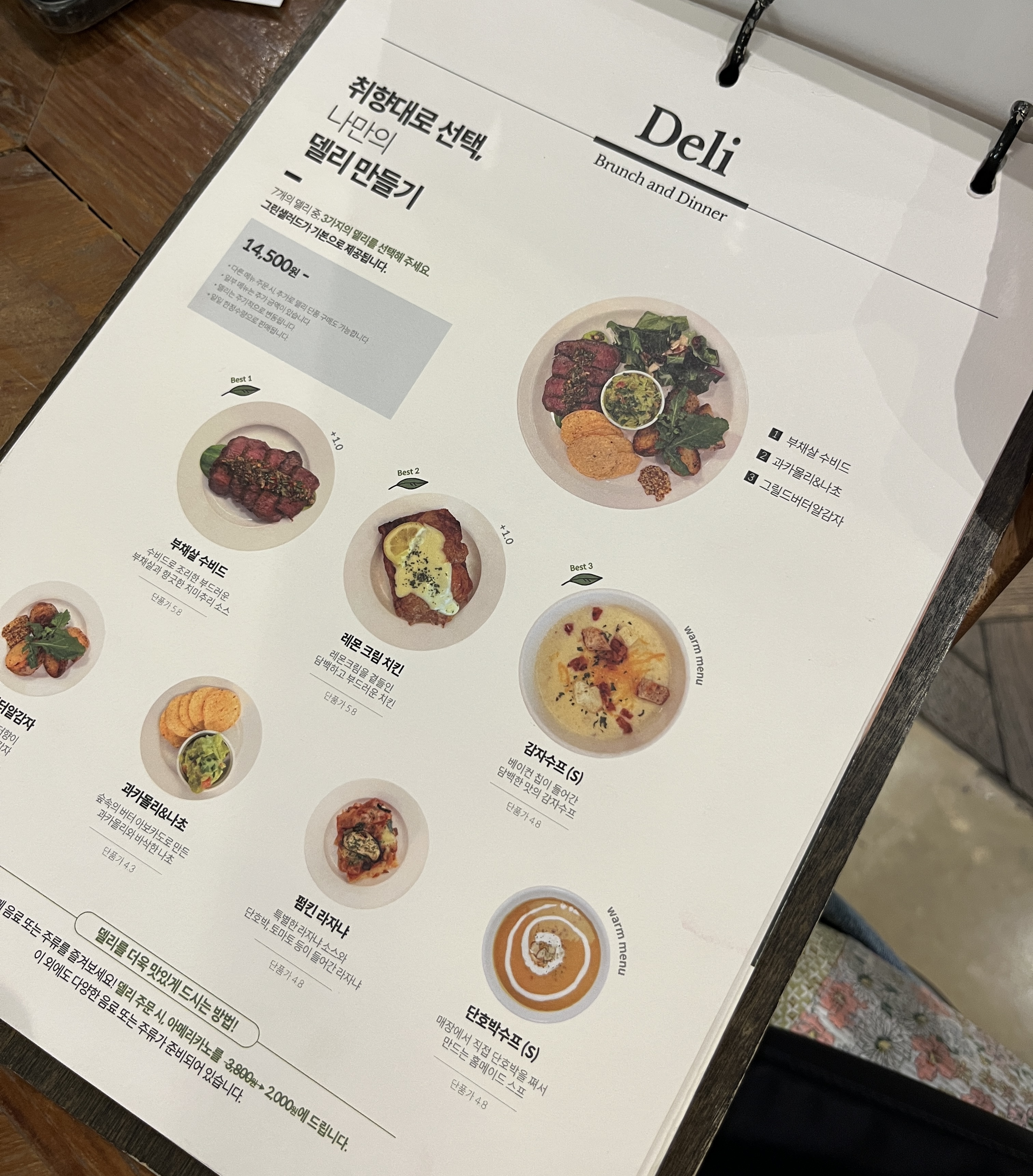 각 자리에 준비되어 있는 메뉴판 으로