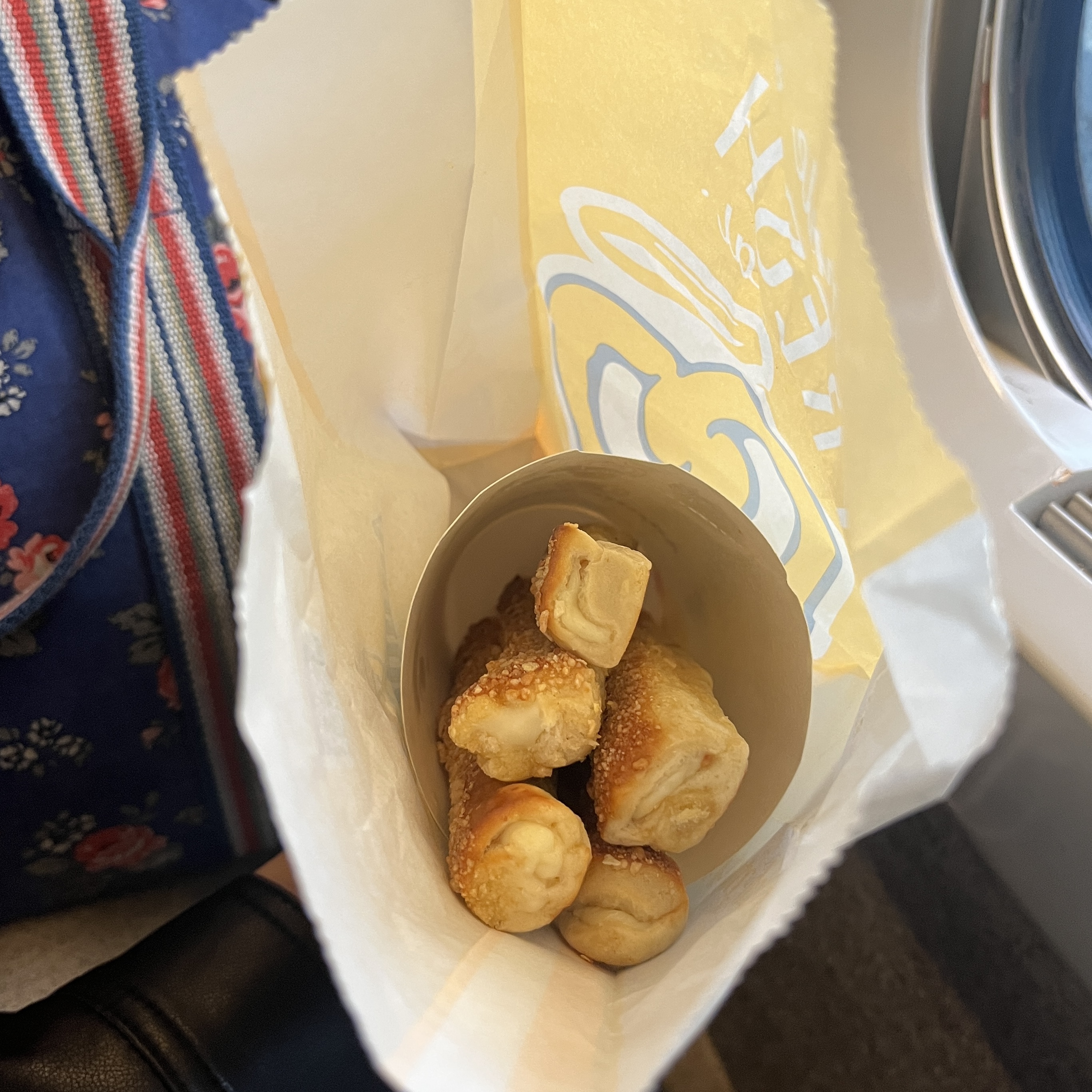 기다란 프레즐 안에 크림치즈가 잔뜩 들어가있지만 부스러기가 많지 않아 기차 안에서