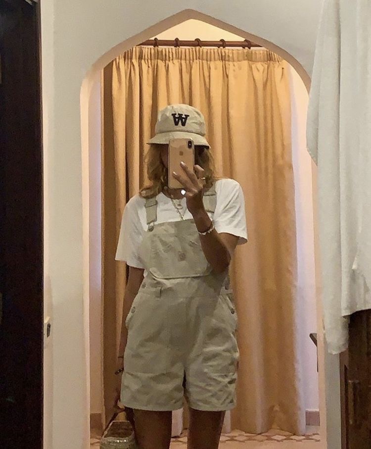 그럴땐 반바지 기장의 오버롤 혹은 오버롤 원피스를 입어보아요!