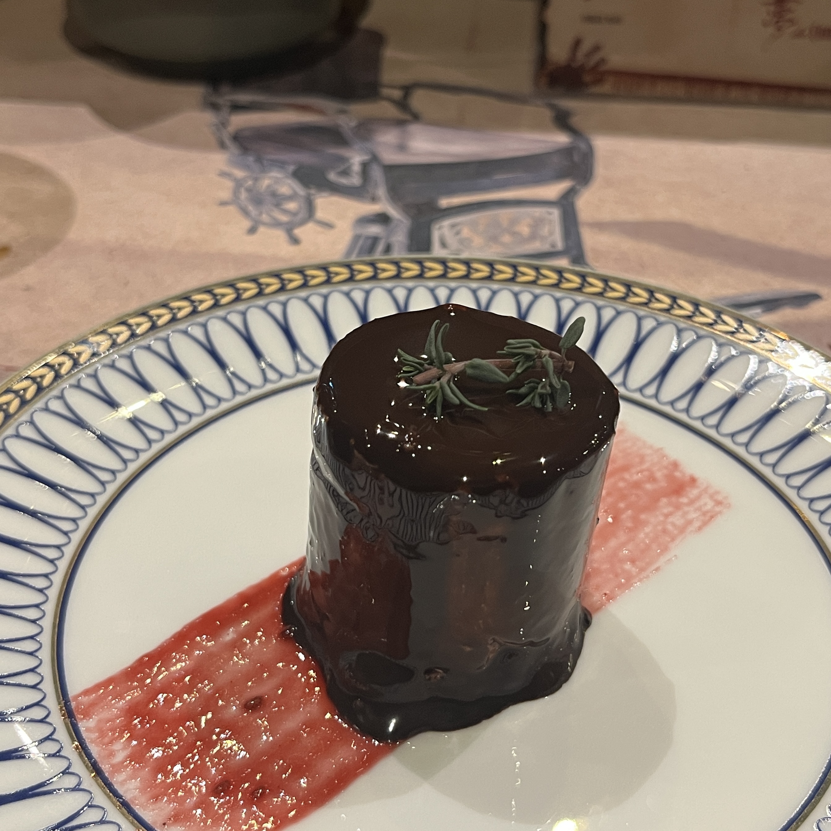 마지막 디저트는 초코무스를 두른 무화과 파이입니다.
