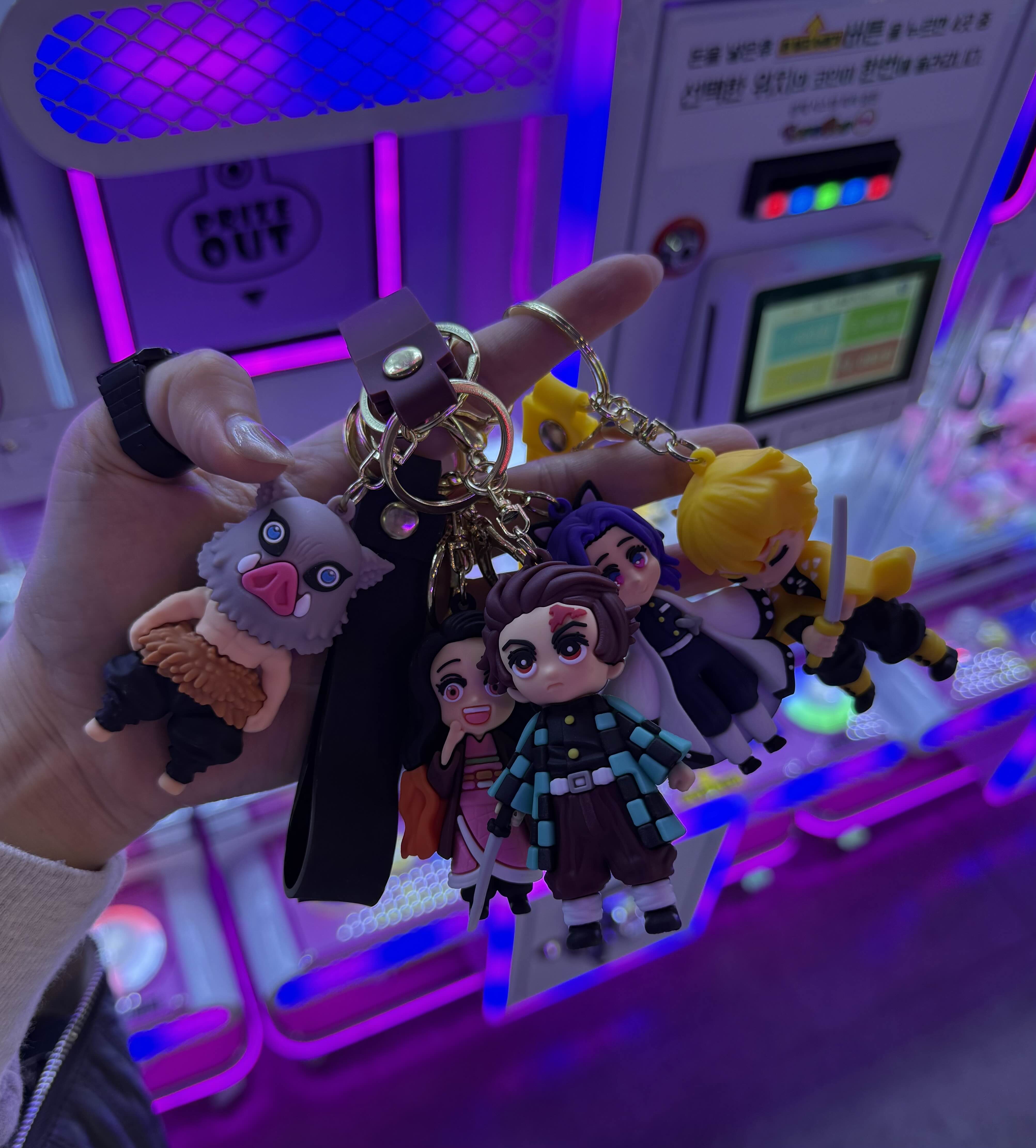 하루종일 열심히 먹고 마무리는 뽑기방 가서 귀멸의 칼날 키링을