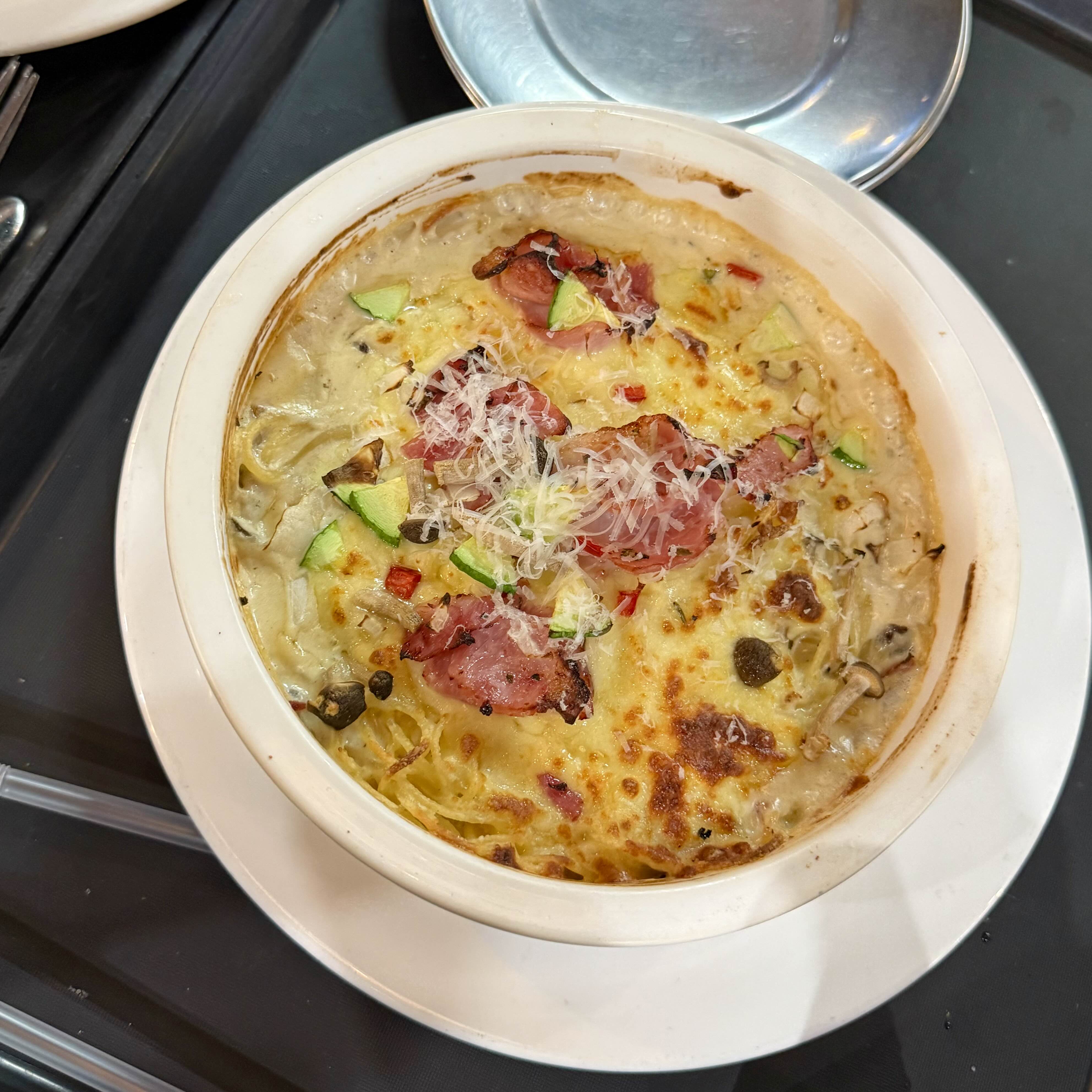 바베큐 치킨 플레터 , 숯불고기 토마토 리조또 그리고 베이컨 크림 오븐 스파게티 를 주문-