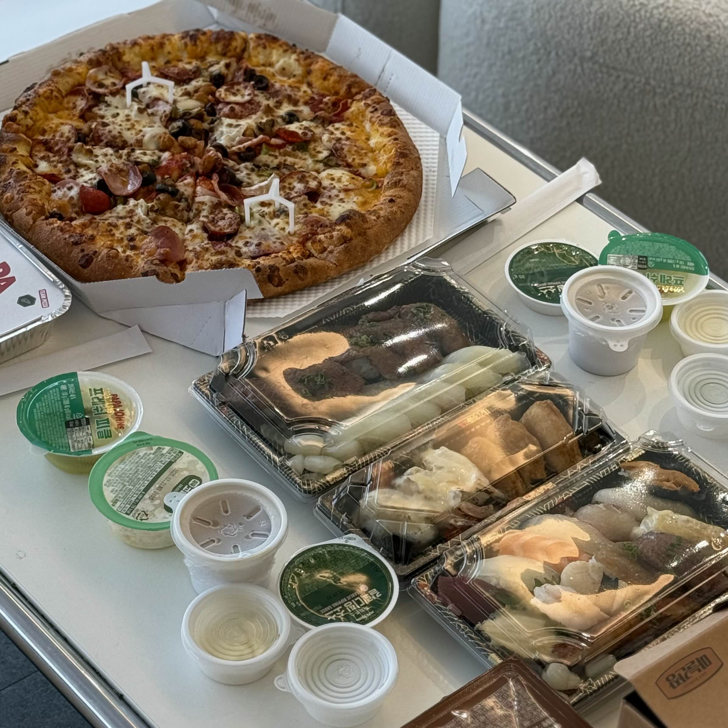 촬영을 끝내고 환복 후 먹는걸 추천 드려요!배달이 가능한 곳이라 음식도 다양하게 주문해 먹었답니다.