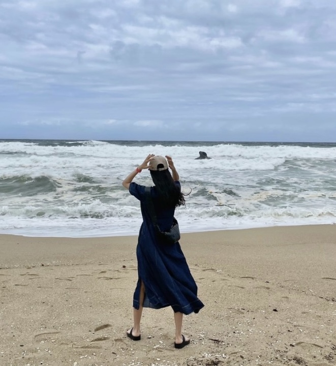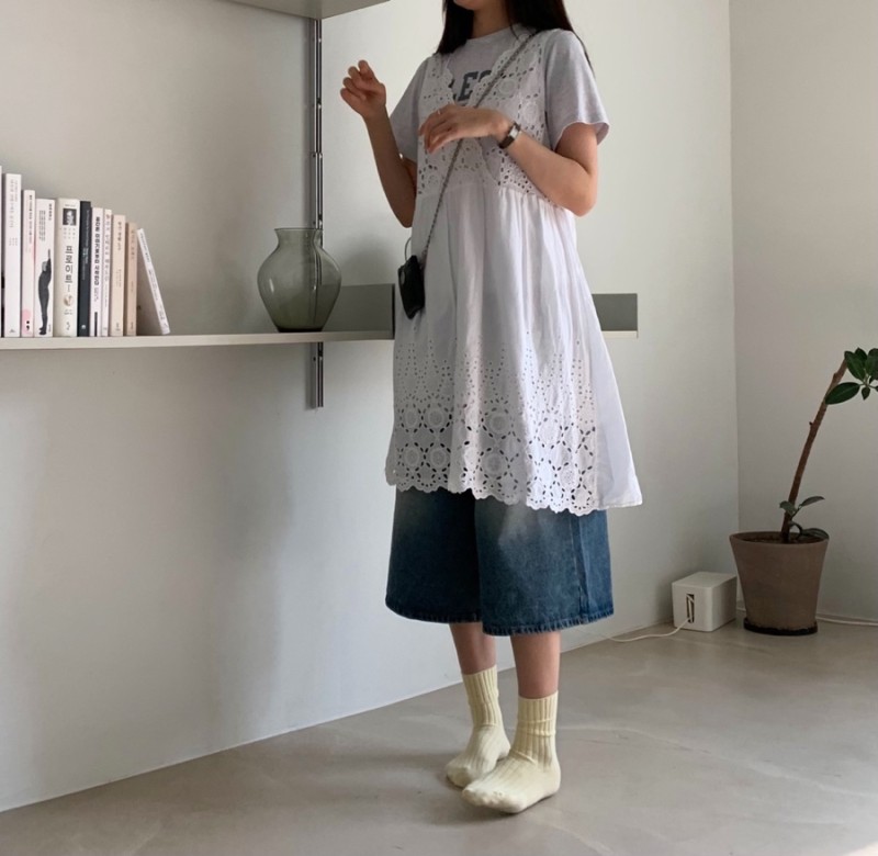 햇빛과 바람에 몸을 보호하고 싶다면 원피스 위에 박시한 스타일의