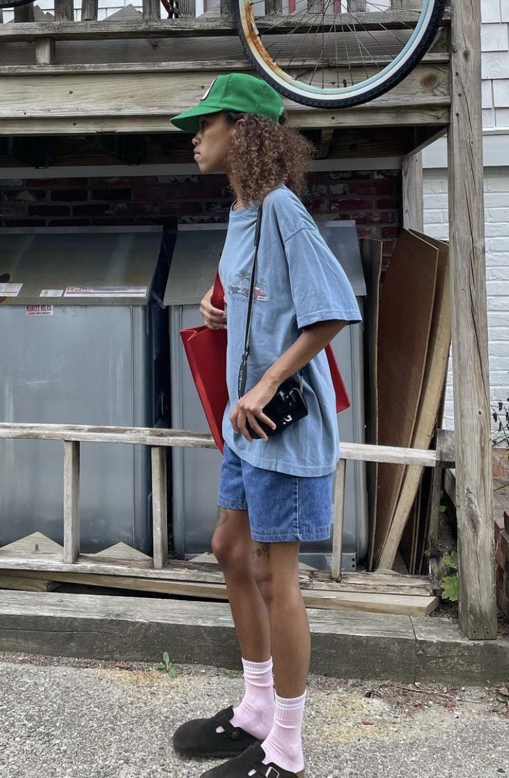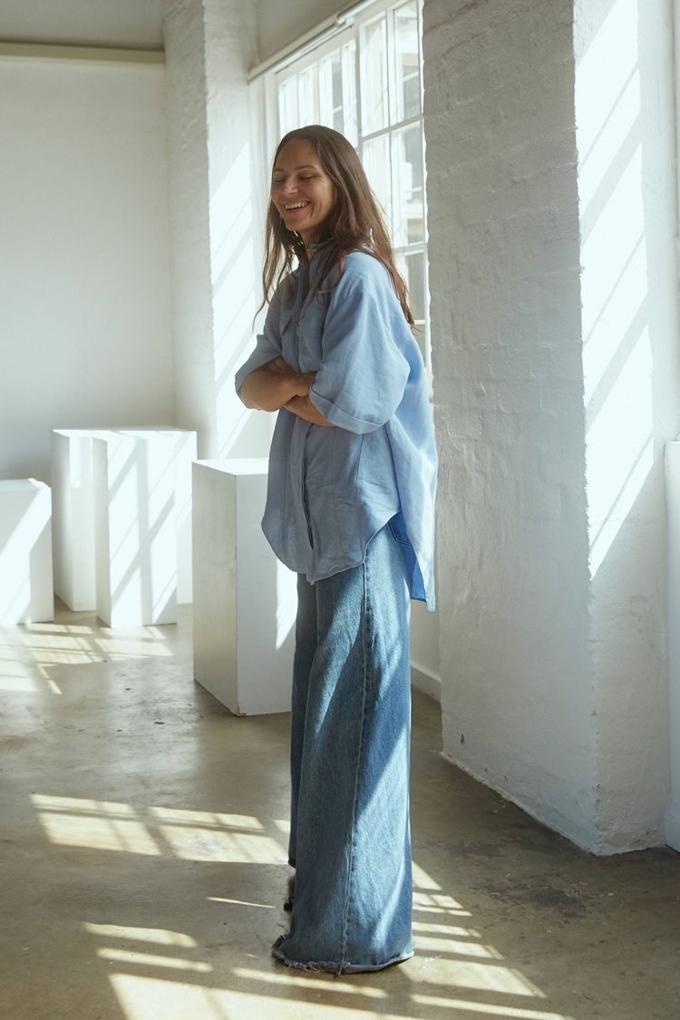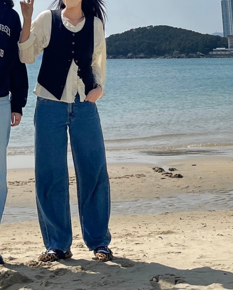 혹은 낙낙한 핏의 데님팬츠를 함께해도 좋습니다.청청 으로 입는다면 레트로 하면서도 멋스럽답니다-