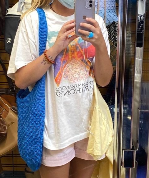 그럴때에는 프린트 나염 혹은 자수가 있는 티셔츠를 입어보는건 어떨까요?