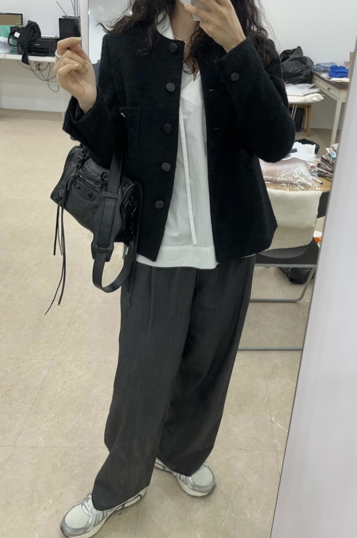 검정색상에 이어 백색 역시 데일리 하게 입기 좋은 트위드입니다.