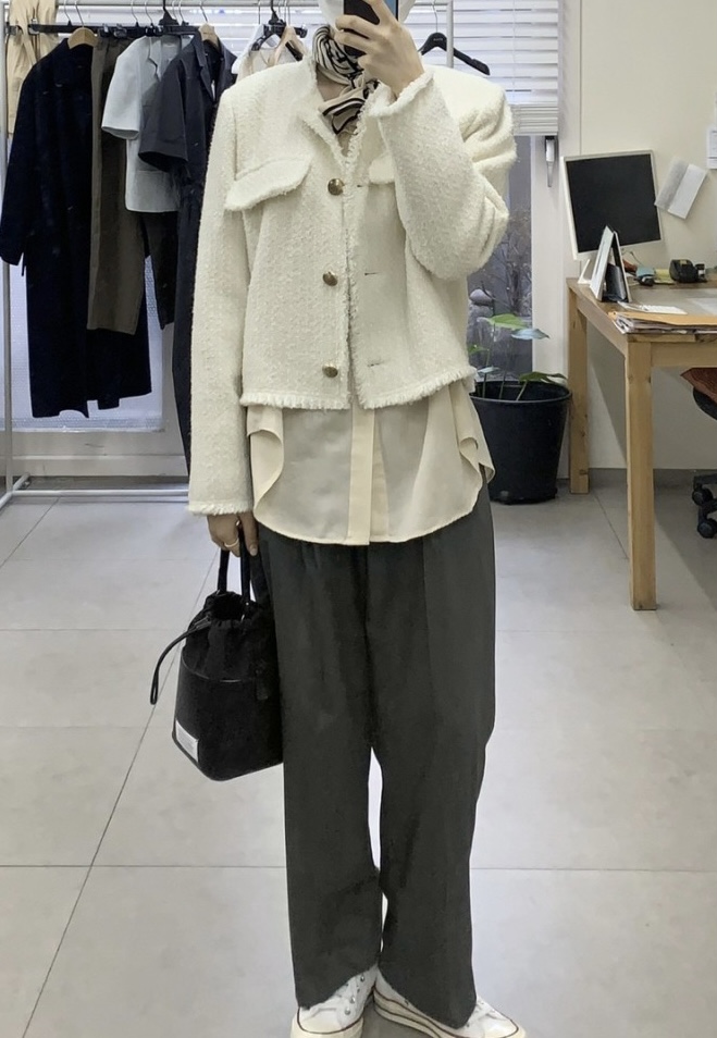 검정색상에 이어 백색 역시 데일리 하게 입기 좋은 트위드입니다.