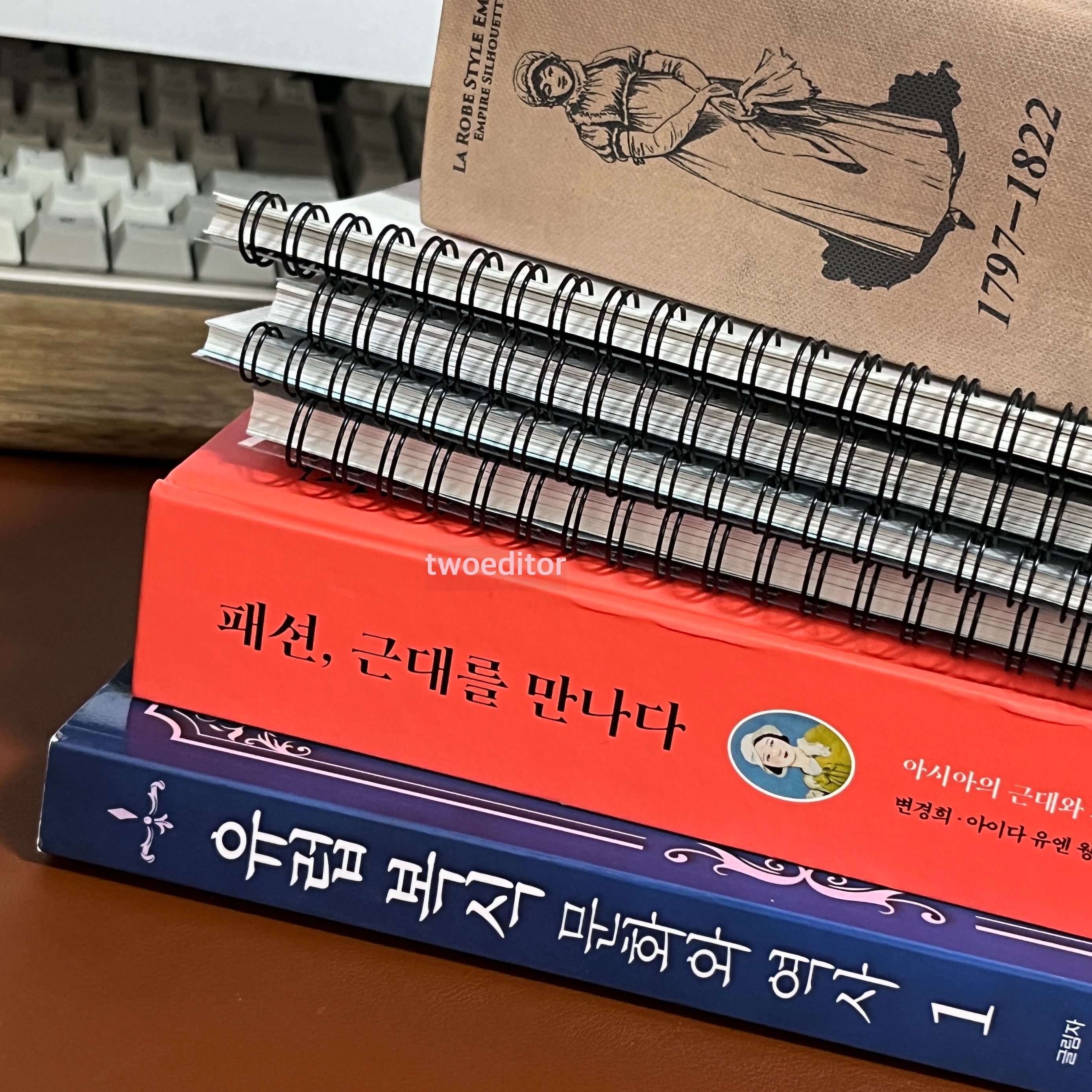 서양패션 멀티 콘텐츠의 경우 들고 다니기엔 무겁기에 파트별로 분권 작업을 추천. 총 5권의 얇게 분권이 되며 읽고 있는 파트만 가볍게 들고 다닐 수 있음
