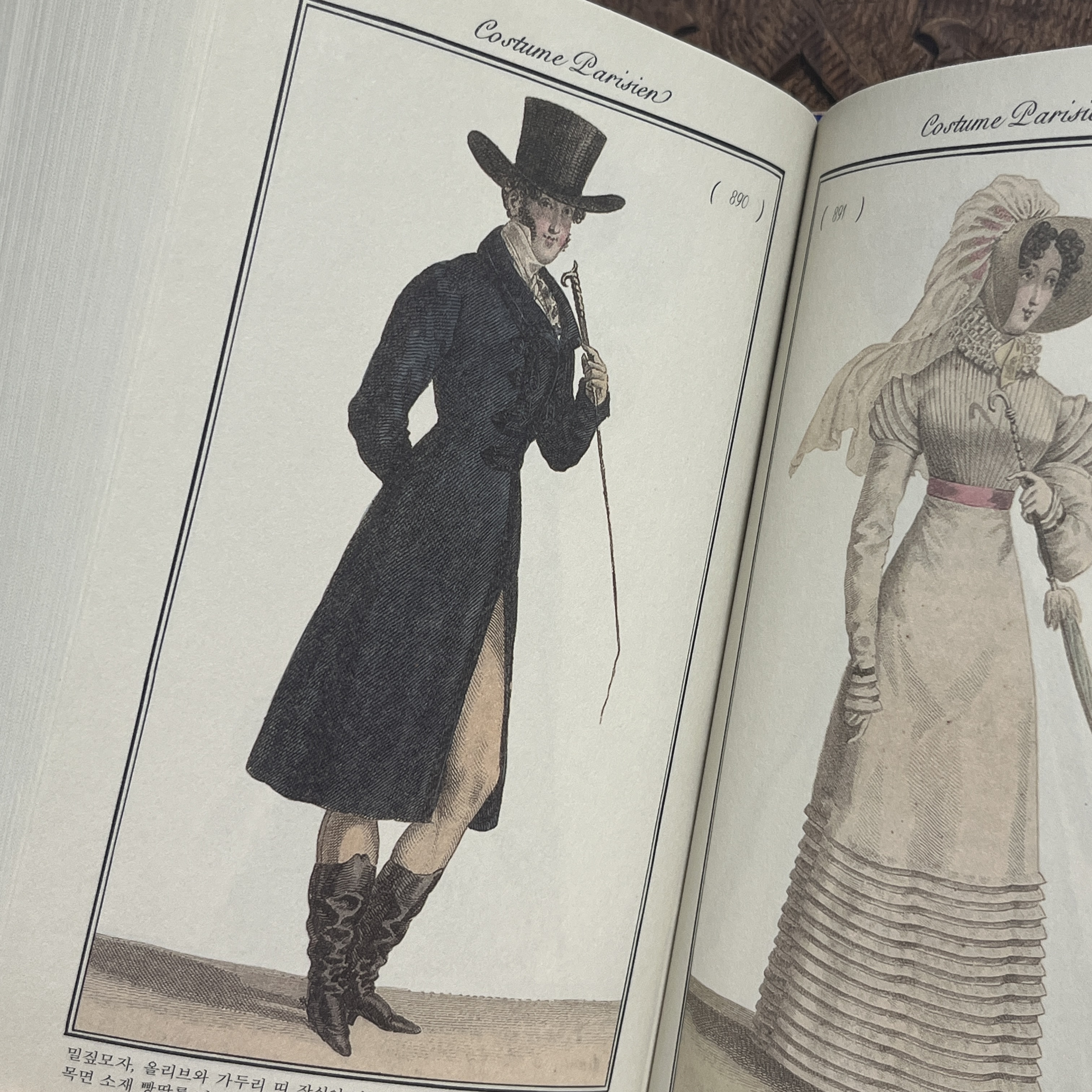 텀블벅에서 펀딩으로 구매했던 비공식 출판공방의 '라 로브 스띨 앙삐르:엠파이어 실루엣 1800-1820'입니다. 엠파이어 실루엣은 리젠시 스타일 로도도 불리웁니다.나폴레옹이 황제로 있던 시기의 유행했던 스타일로 그리스/로마 양식으로의 복귀를 추구했던 '신고전주의' 시대의 일러스트들을 묶어둔 도록입니다.