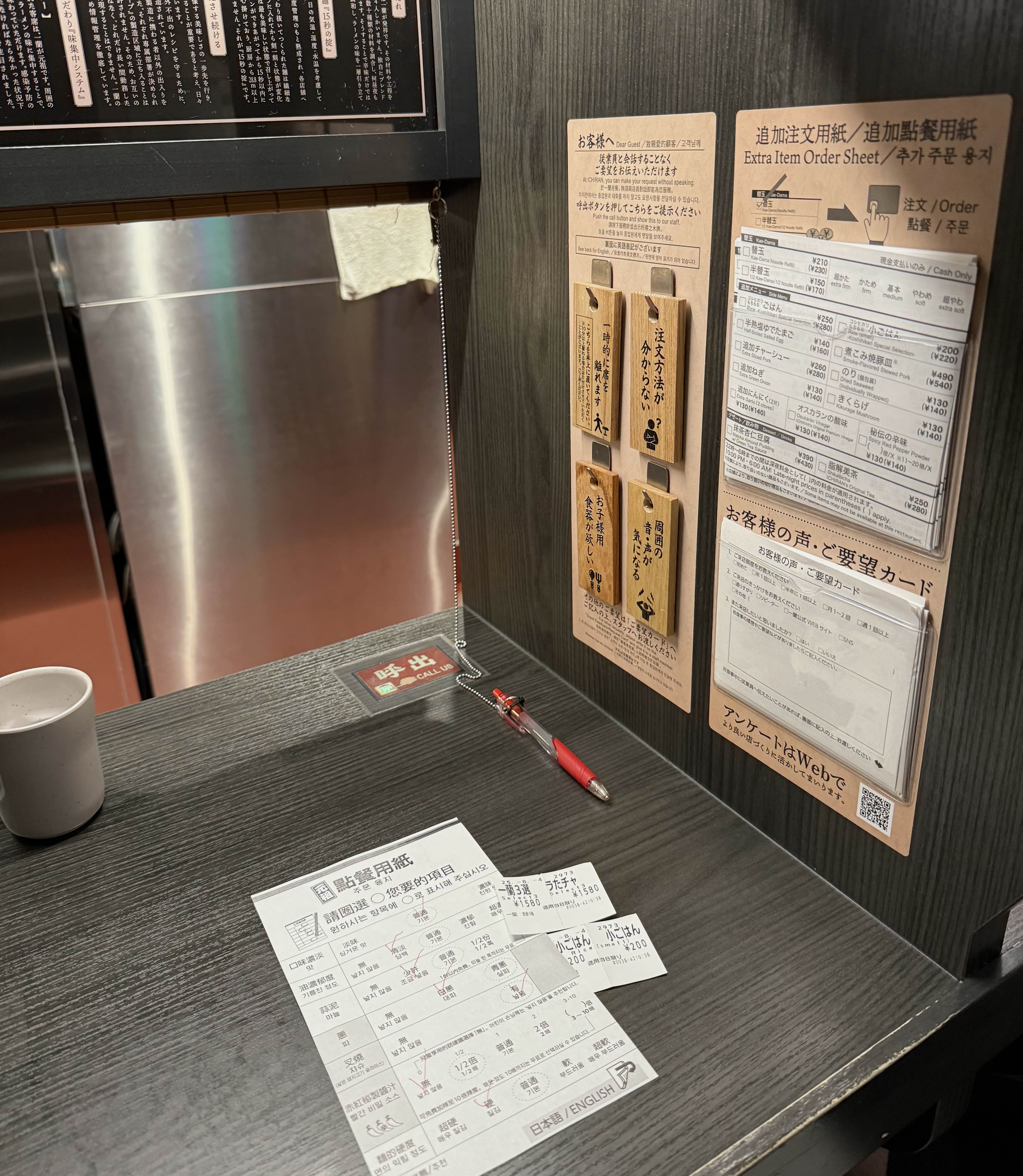 차슈를 추가하고 밥을 추가하고 면을 추가해서 배부르게 먹었던 이치란 라멘.