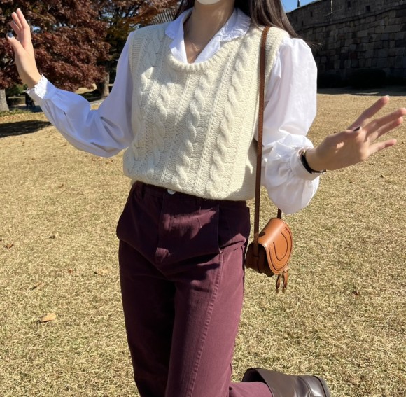 22 FW 시즌에 구매했던 Pope Cable Knit Vest입니다. 뽀얀 크림 색상 의 울 소재의 니트 베스트입니다. 오버핏의 사이즈가 아닌 보다 정사이즈의 핏으로 부담 없이 입을 수 있습니다. 사이즈가 큰 디자인의 베스트는 잘못 스타일링하면 부해 보이고 짧아 보이는 역효과를 줄 때도 있습니다. 포페 케이블 조끼의 크림 색상은 어디 옷에나 잘 어울리기에 보폴이 많이 올라올 정도로 입는 중이랍니다!