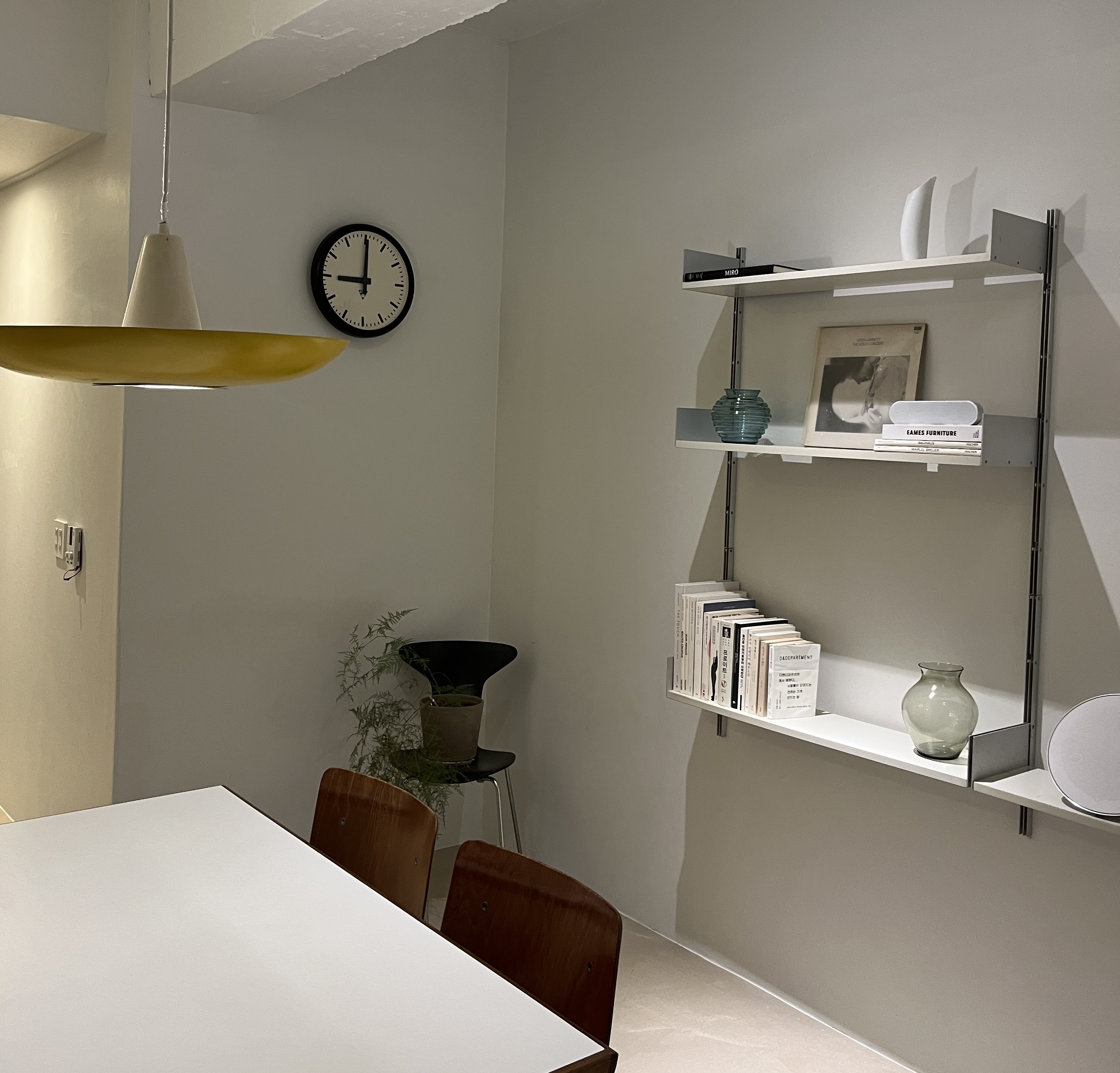 미니멀한 인테리어의 빈티지 가구들이 있는