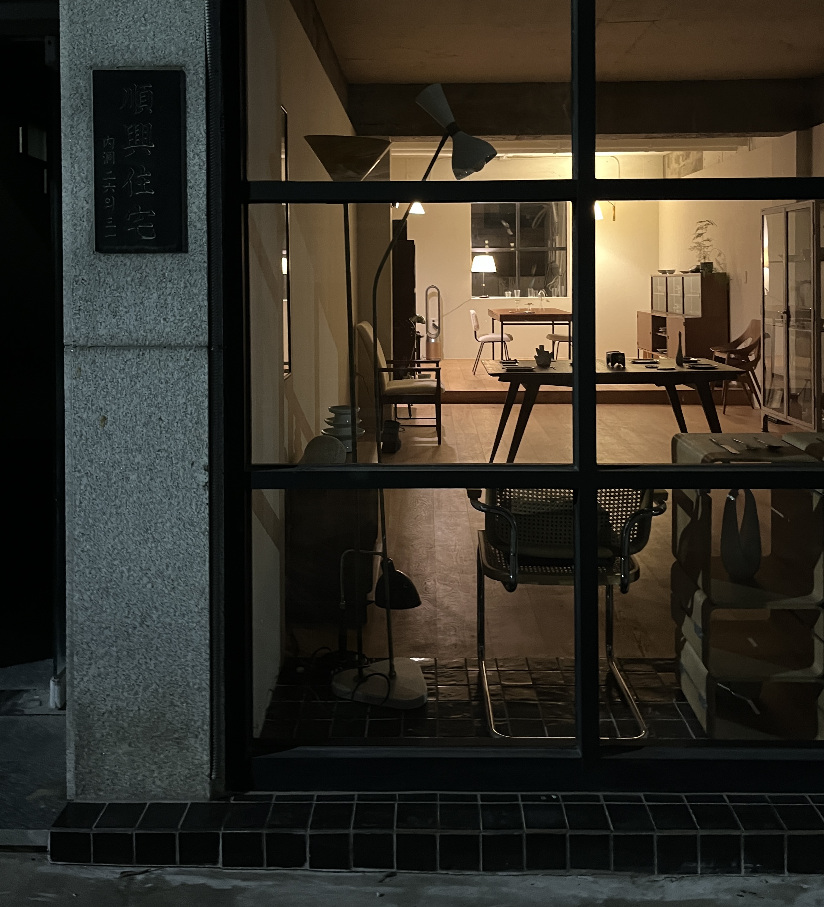 문을 닫았지만 큰 창 안으로 보이는 카페 엔티리어와 분위기가