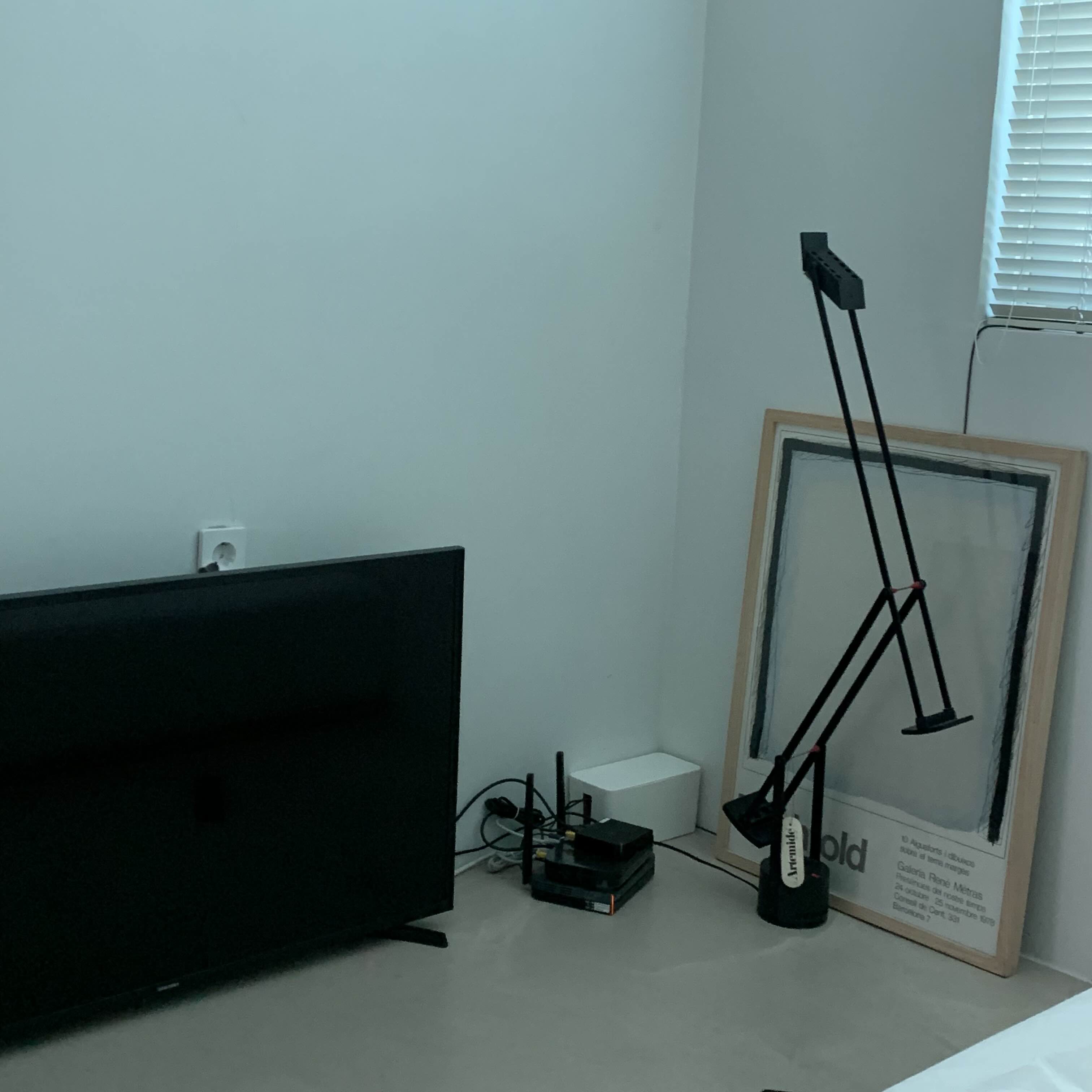 텔레비전이 바닥에 놓여져있는데요.침대에 누워서 보기에는 티비의
