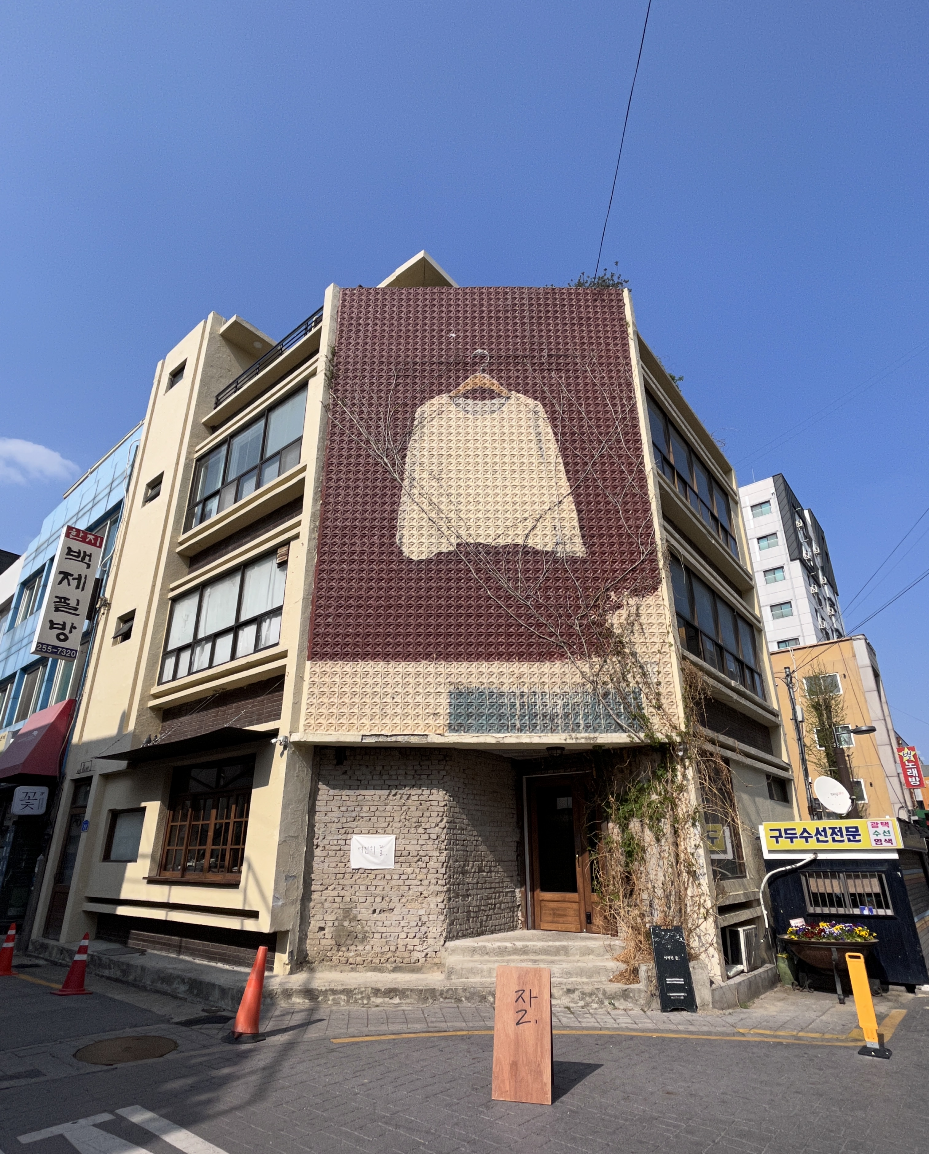 외관에 옷이 매우 크게 그려져 있는 독특한 곳 이였습니다. '잘' 이라는 입간판만 있어서 처음에는