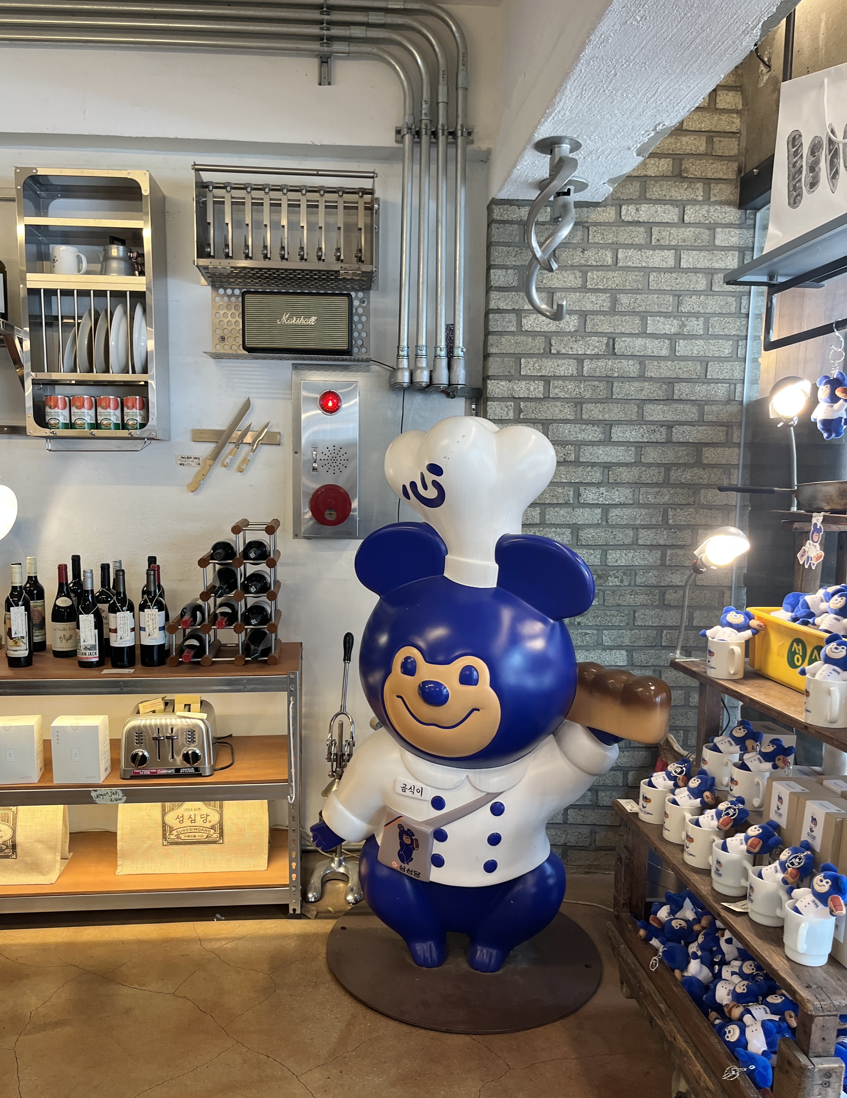 1층에 들어가면 성심당의 마스코트로 보이는 파란 곰돌이와 다양한 굿즈들을 볼 수 있었어요.